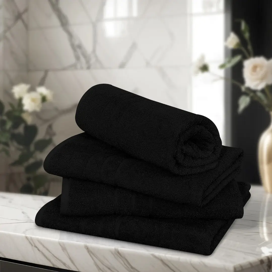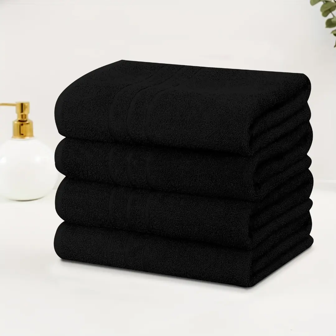 The deep black color gives a clean, sophisticated look that complements modern, minimal, or luxury-inspired spaces. Its highly absorbent fibers help remove moisture efficiently, allowing you to dry off quickly without a heavy or rough feel. The fabric offers a balanced thickness that feels soft while remaining breathable for daily use. Carefully stitched edges help maintain its durability and shape even after frequent washing.