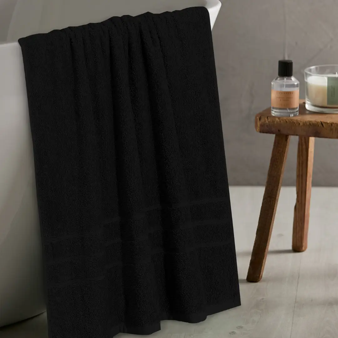 Perfect for home bathrooms, gym sessions, guest use, or travel, this black bath towel combines comfort, durability, and timeless style in one essential piece.